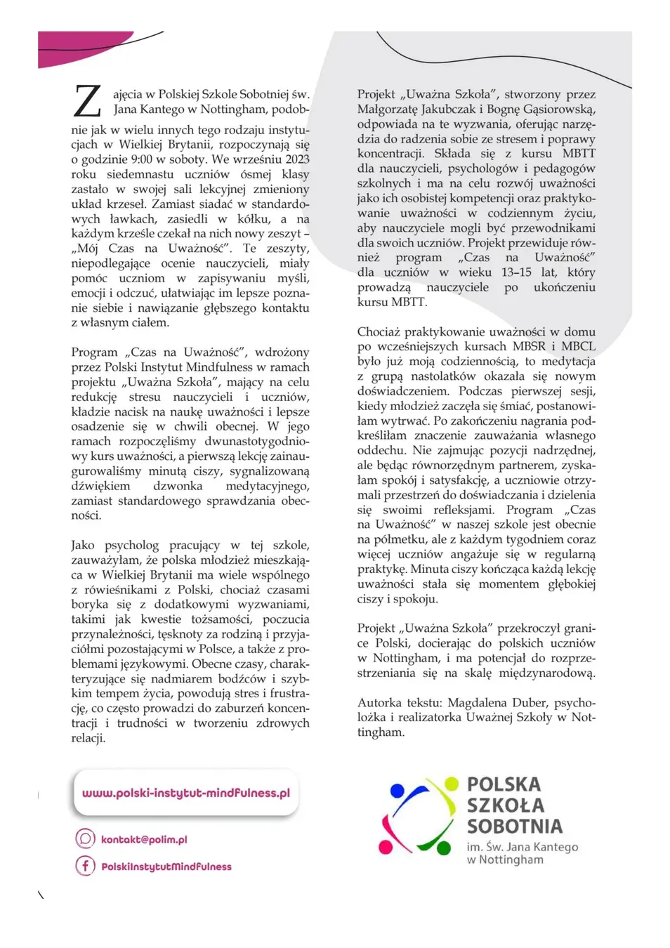 Uważność Polskiego Instytutu Mindfulness w Warszawie.