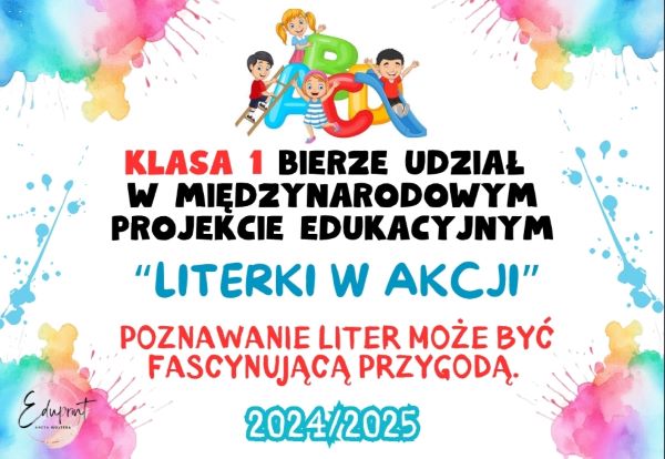 W tym roku, po raz pierwszy w naszej szkole będziemy realizować międzynarodowy projekt „Literki w akcji”, który ma na celu rozwijanie umiejętności czytania i pisania oraz zapewnienie uczniom pierwszej klasy solidnej podstawy w rozpoznawaniu i pisaniu liter poprzez różnorodne aktywności i interaktywne zadania, a także stymulowanie kreatywności i wyobraźni. Poprzez zadania plastyczne, techniczne, gry i zabawy zachęcamy uczniów do twórczego myślenia, rozwijamy ich umiejętności społeczne. Umożliwiamy uczniom pracę w grupach, wymianę pomysłów oraz współpracę podczas różnych zadań i zabaw.